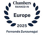 Incluido en 2025 por octavo año consecutivo en la edición europea de la prestigiosa guía legal que anualmente elabora el directorio internacional Chambers & Partners para explicar la práctica legal de los principales países, siendo un recurso imprescindible para conocer la regulación financiera en diversas jurisdicciones. Según destaca Chambers & Partners, Fernando Zunzunegui “es respetado por su experiencia en regulación financiera, sistemas de pago, banca digital y litigios relacionados con la banca y las finanzas”.
